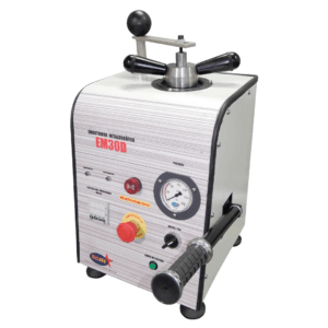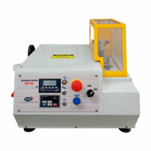 Equipamento de bancada, construção resistente. Estrutura em alumínio protegida com pintura eletrostática a pó. Base em alumínio fundido.