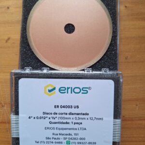 Discos de corte diamantados para uso em cortadoras de precisão. Utilizado em Controle de Qualidade Industrial, Laboratórios de Engenharia e Odontologia para cortes precisos em amostras de pequeno porte.